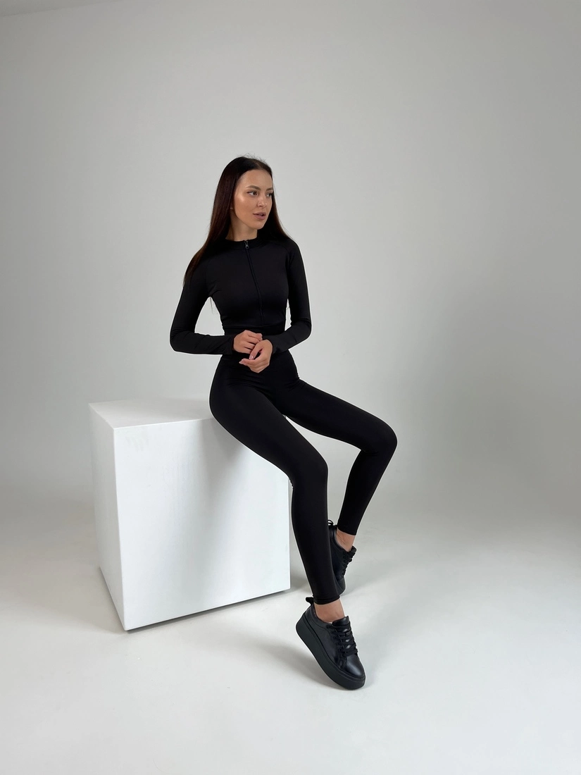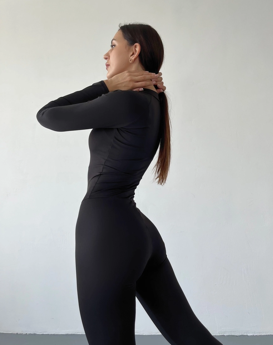 Спортивний комбінезон універсального чорного кольору. Завдяки тісному переплетінню волокон матеріалу, комбінезон майже неможливо порвати, а через пори тканини проходить повітря, тому шкіра може дихати. У ньому можна спокійно займатися спортом, адже тканина відштовхує не лише вологу, а й бруд - він завжди виглядає, наче тільки-но вдягнутий. Через високу водовідштовхувальну властивість матеріалу, на ньому не залишається слідів поту.
